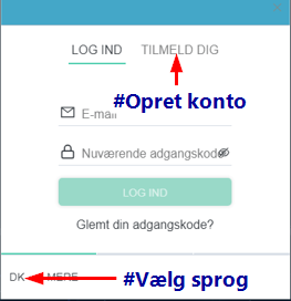 Log ind / gå til opret konto